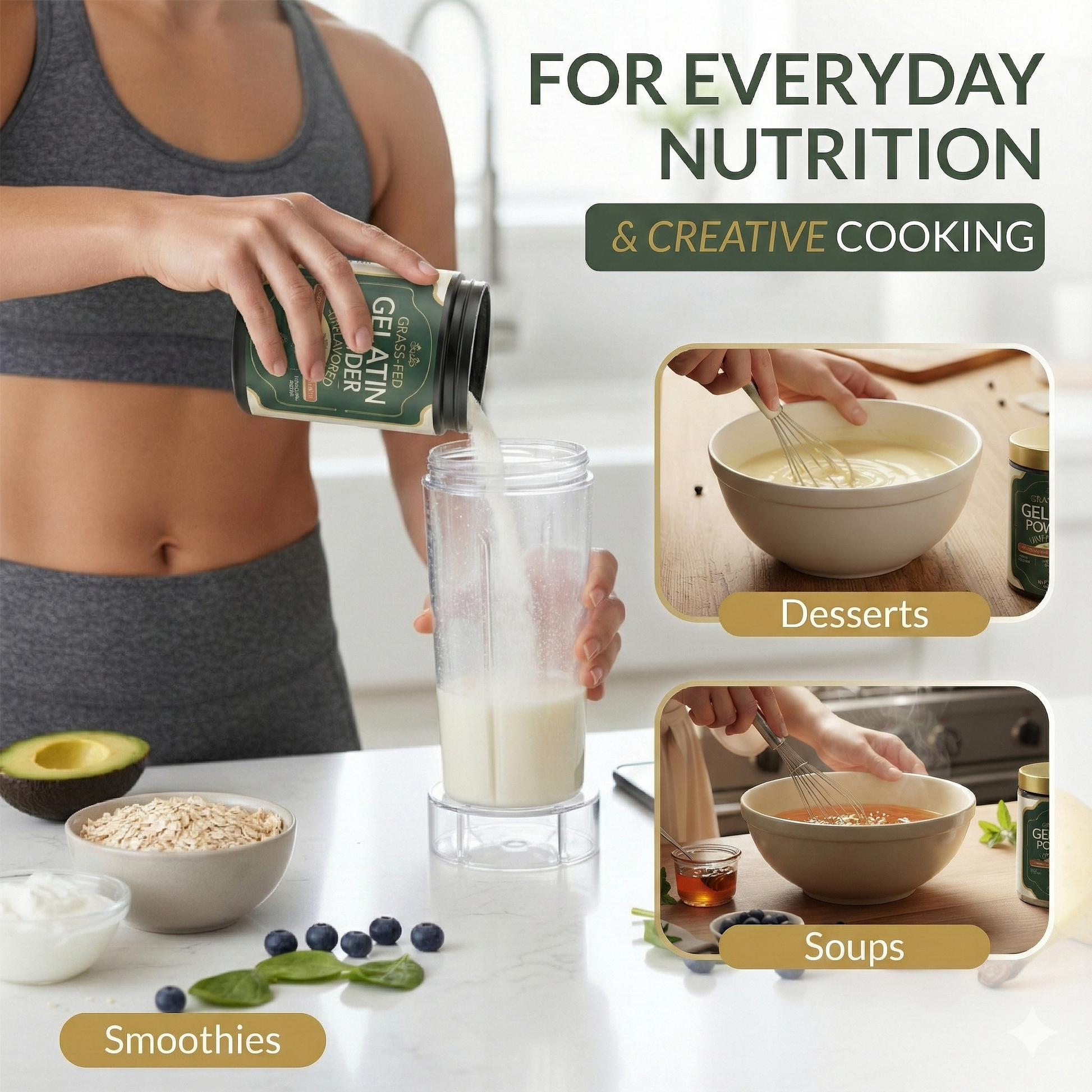 Our gelatin powder dissolves instantly in any liquid—completely unflavored with zero beef taste. Use it to: